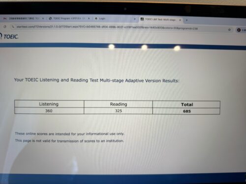 ACさんは今回初めてTOEIC IP テストを受験され、見事685点を獲得されました。